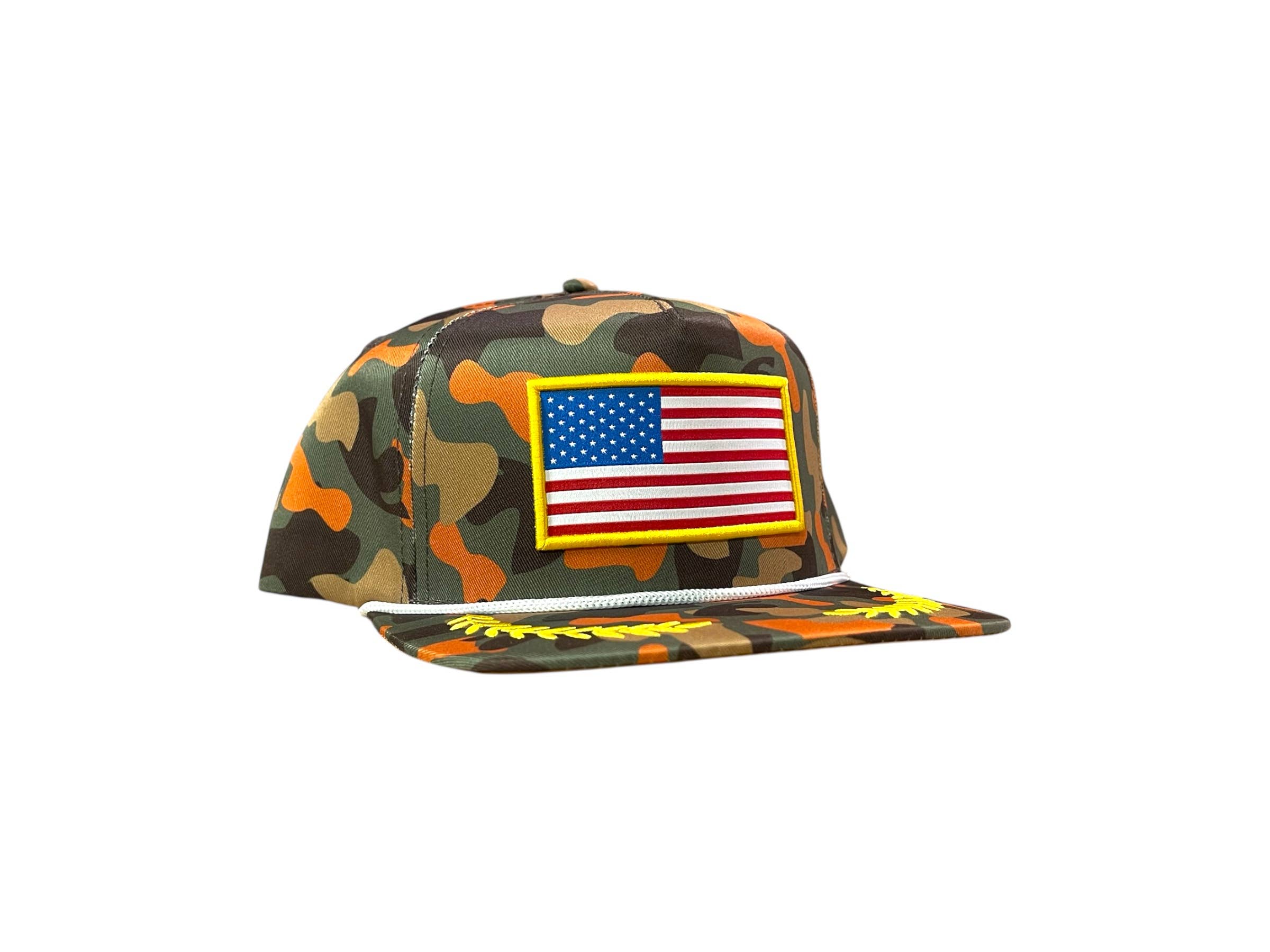 With a lightweight nylon build, structured mid-height crown, and adjustable snapback closure, this hat delivers all-day comfort and durability. The camo colorway paired with a crisp white rope detail gives it that classic outdoor look that never goes out of style.